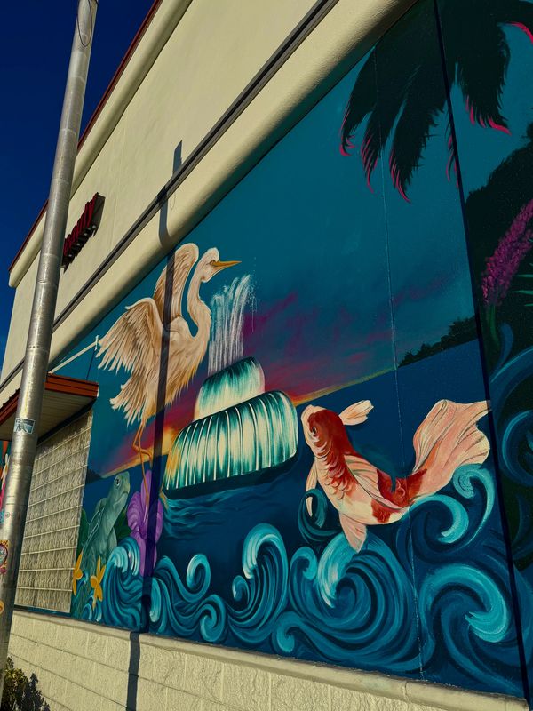 The mural spans the building’s south wall and blends Florida’s natural beauty with Southeast Asian symbolism to tell a story about coexistence, resilience, and shared identity.