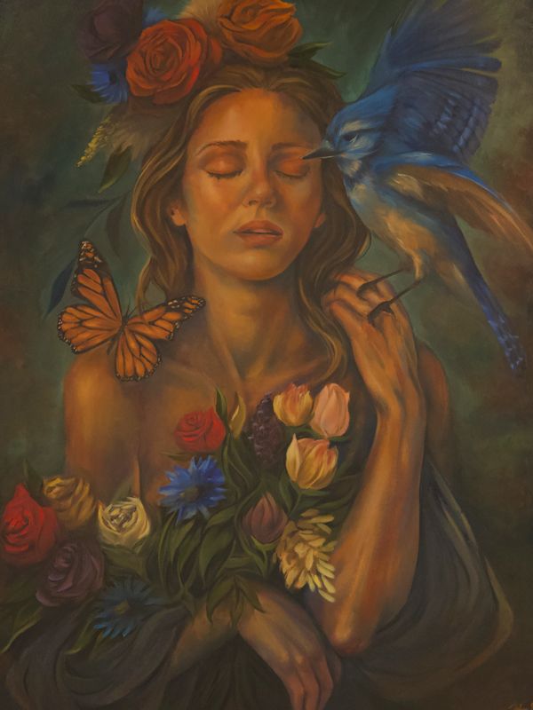 A quiet meditation on nature as divine language. The blue bird rests in silence, suggesting that meaning does not always arrive through force or declaration. In stillness, something greater communicates. The sacred often speaks without raising its voice.